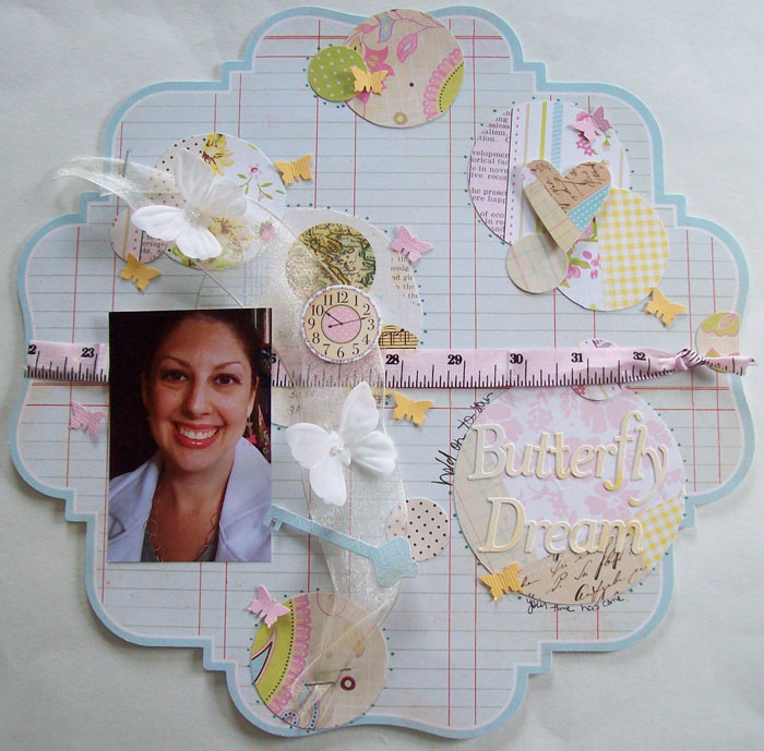 This layout is from 2010…I feel like it really represents my style, then & now, too. I love the papers I used here, the colors, the butterflies, and the circles. I feel like these shaped, die-cut papers should make a comeback. It is a very happy layout, and that is what I’m all about. I have my “darker” layouts too…there is a time and a place for them, but I try to always be happy and upbeat, nonetheless. 🙂