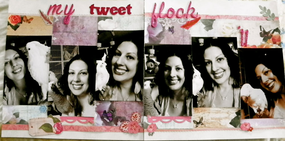 This layout is from fall 2011…which seems like yesterday and a lifetime ago at the same time! This is a fun two-pager, featuring me with the birds. I love taking pictures with them, because believe it or not, I can see how they change over time!