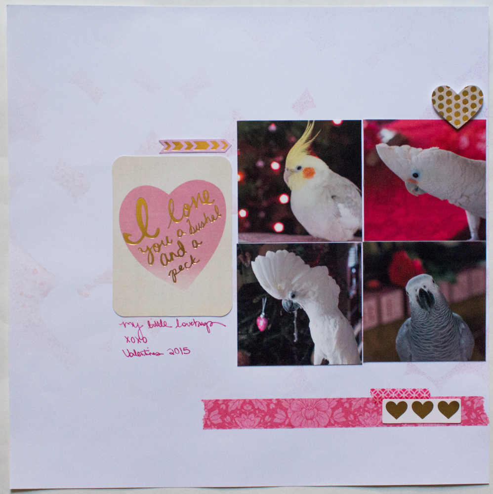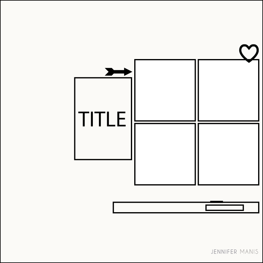 Today’s sketch is great sketch to get you started on a Valentine layout. There are spots for multiple photos and space for fun embellishments too. On my layout, I also misted the background with a stencil to add a fun detail.