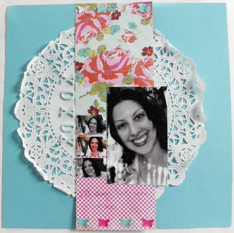 It’s #tbt again… so today I found this sweet layout of me & my little Maxx from 2011. How pretty is that floral paper? Love it. And add a doily and some butterfly punches… simple, yet effective. 🙂
