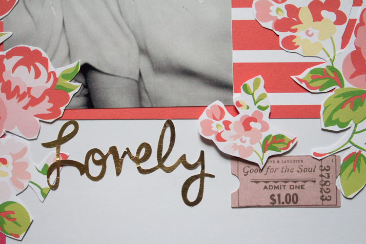 Today, I wanted to share one of my favorite new layouts I’ve made this year. When I got the papers from Felicity Jane’s June kit, I thought of some old black & white photos that might work with it, particularly the floral paper. Then, I found this photo of my grandma & her sister, and it clicked! I love the photo, and how it works so well with the papers I put together. I like to think if they would have scrapped this picture when it was taken in the 40’s, it might have turned out something like this. 🙂