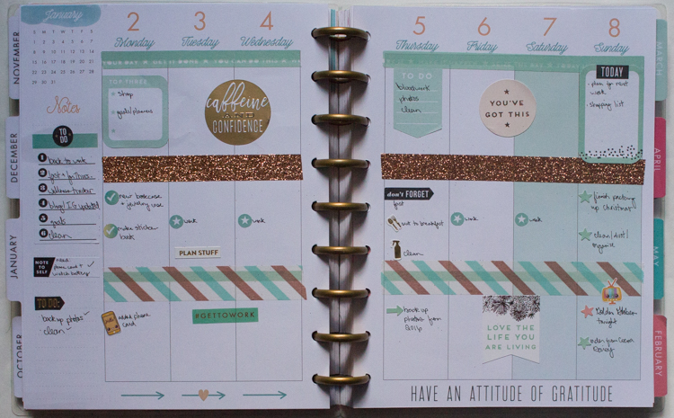 I wanted to share a flip-through of my January spreads with you all today. I started 2017 confident in my planner routine, then halfway through the month, I fell in love with the rose gold Happy Planner at Michael’s, and things fell apart from there.