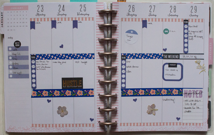 If you couldn’t tell, I don’t have a lot of “planning” or even writing in this planner, because it’s not my main planner anymore. I want to use this one as more of a ‘creative week’ notebook. My planner system is evolving every day, every week, it seems. I can’t wait to see how February turns out! Stay tuned…