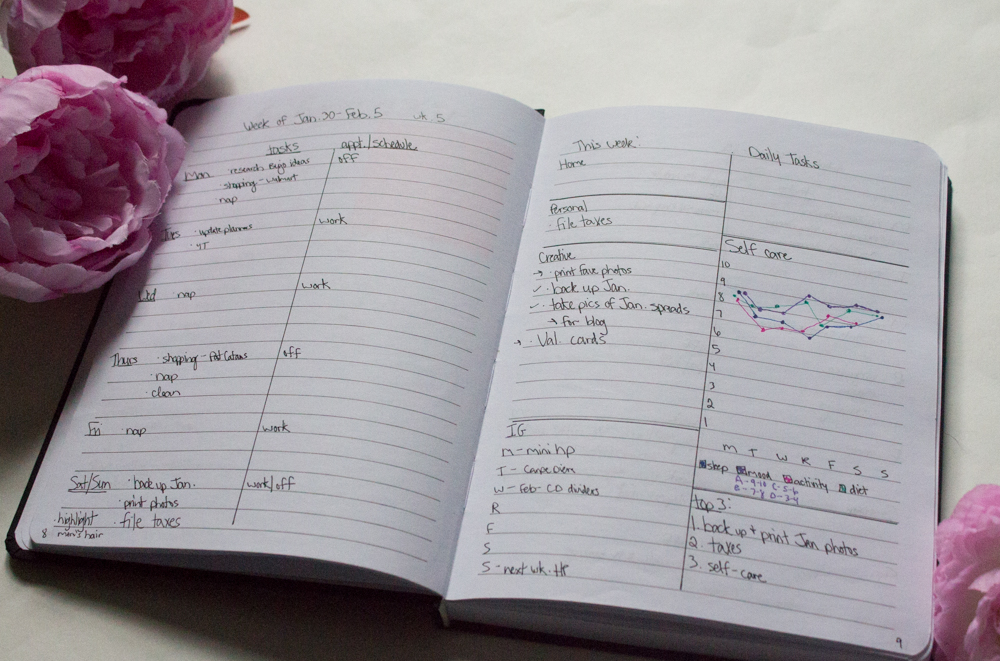 So where do I actually plan? I started a bullet journal. I love it! I just have a simple, black covered and lined journal, but I am not afraid to mess it up. I may get a Leuchtturm when I finish this journal (I think I would like dotted grid pages instead), but I am experimenting with this system in this cheap journal for now. I love how freeing it is to be able to change how my weekly spreads look, and add in random collections in the middle of everything. I am taking a lot of inspiration from Boho Berry, BlueLahe on IG, and the official bullet journal website right now.
