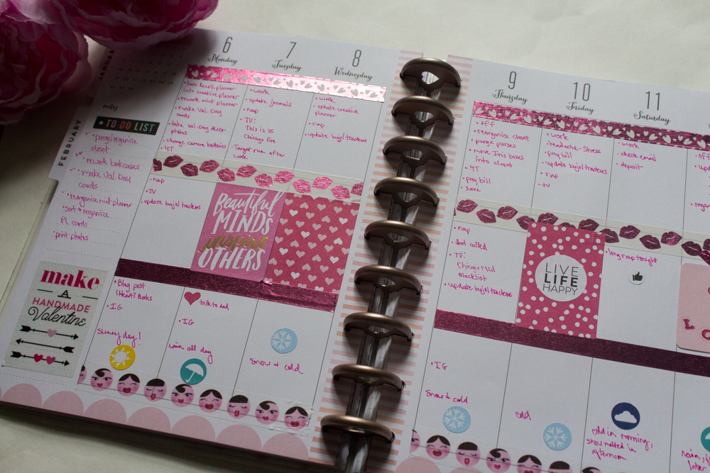 I had a moment (ok a few weeks) when I didn’t know if I wanted to keep my classic size Happy Planner in my everyday stack. But, then I took it out of rotation, and I missed it. Then I looked through my past spreads, and I realized I love decorating a planner. While it needs to be functional as well, I love looking back at how I decorated my week, and what I did that week. Plus, I looove these rose gold rings. So, my Minty Fresh Happy Planner is back.