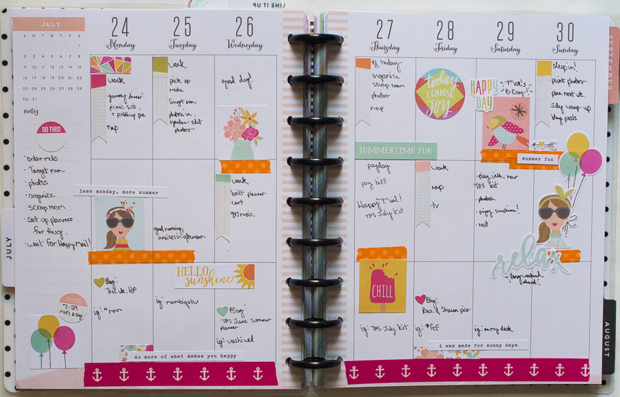 First up is my monthly spread, featuring The Planner Society June kit. I loved the colors in this kit!