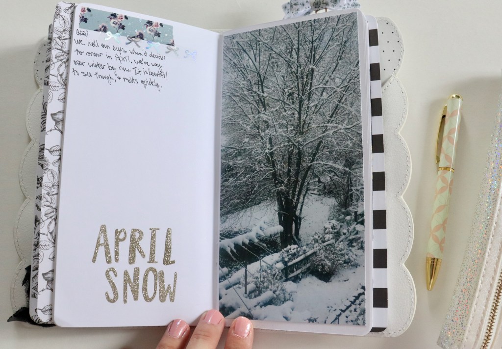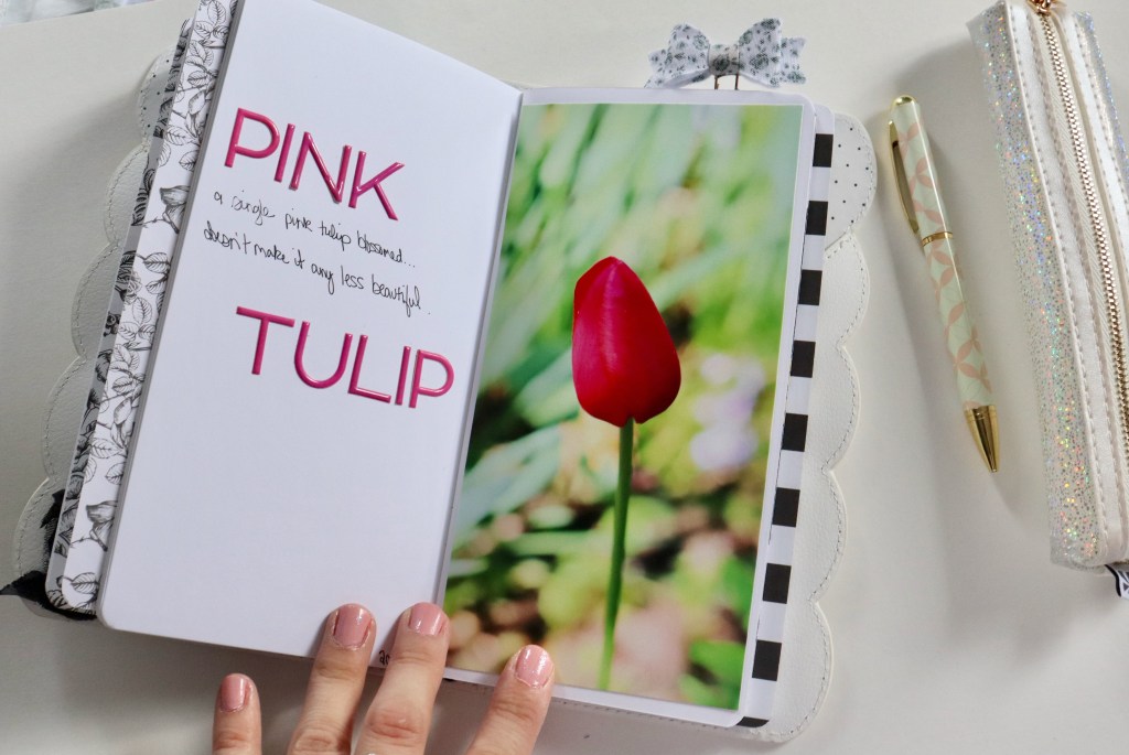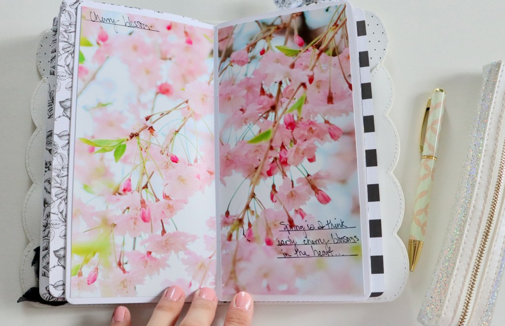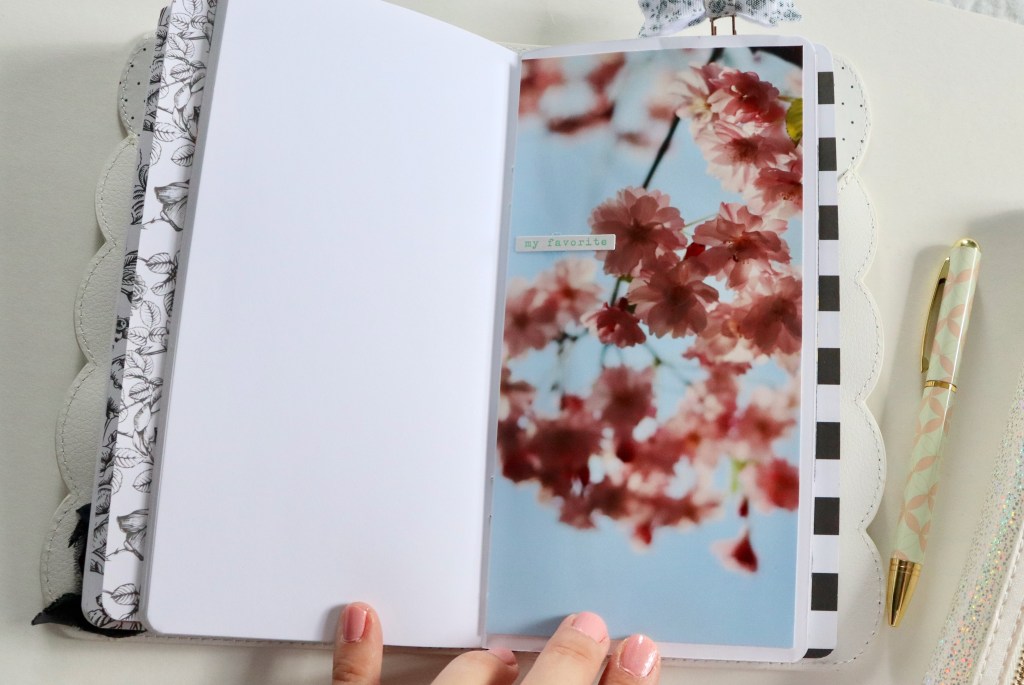 Last week I shared some new scrapbook layouts in my traveler’s notebook. I have some more seasonal ones to share today! Botanical photography is one of my favorite things ever, so in the spring I’m always out & about photographing all. the. flowers.