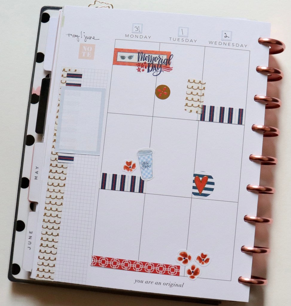 I wanted to celebrate by having a pretty Americana spread in my planner this week. Most of these stickers are from the Southern Bliss sticker book by Recollections (from Michaels). This is seriously the best time of the year in my opinion. Sunshine, long days, outdoor time. It’s all good. 😎