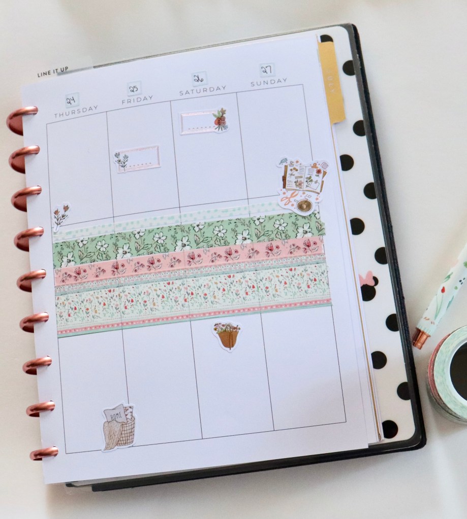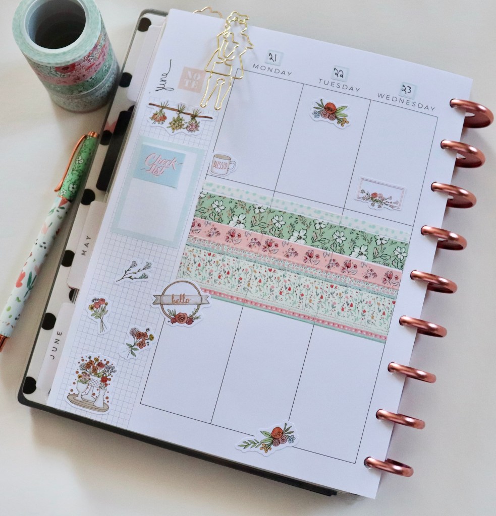 But, in the meantime, I used the Planner Society May 2021 washi and stickers to decorate this week. I love these colors & patterns. I will love opening to these pages for sure this week!