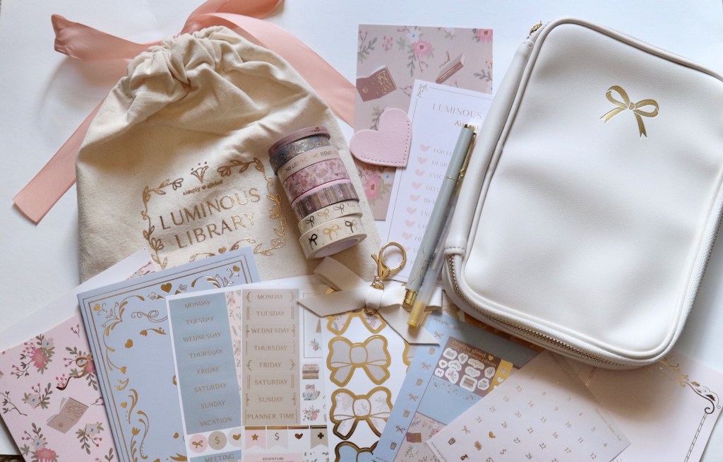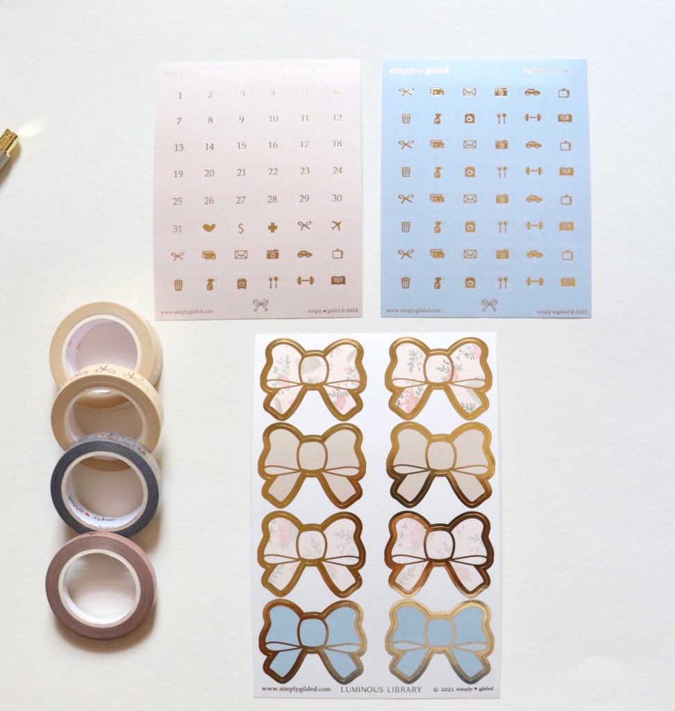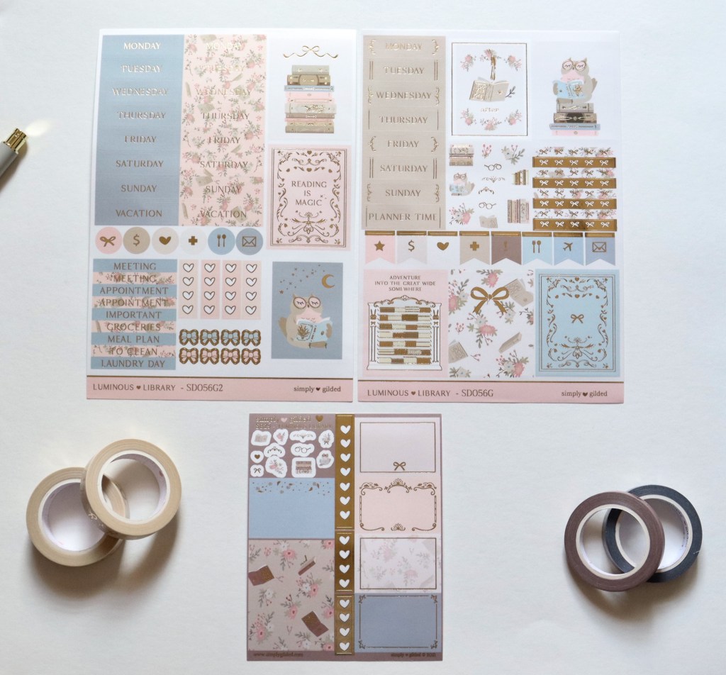 I just wanted to share this gorgeous new box from Simply Gilded! It’s called Luminous Library. It gives me all the French, romantic, Beauty & the Beast vibes. 😍 Beautiful earthy tones, with some pink & blue mixed in. Goodness! I can’t wait to make something with all these stickers & washi. And, the pen/storage case… swoon!!
