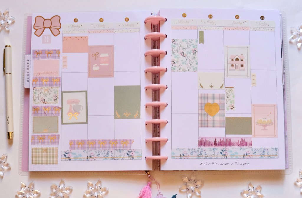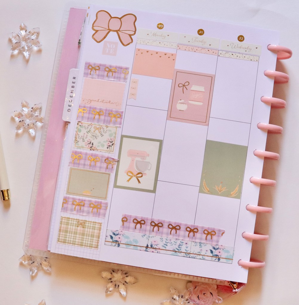 It’s Christmas week. How can that be?? 😃 I didn’t make a traditional red & green spread in my planner for this week. I used the Simply Gilded Home Sweet Home sticker kit and washi instead. I love the colors of this kit. It’s very home-y, which is exactly what I want to see and experience for this week. 💚