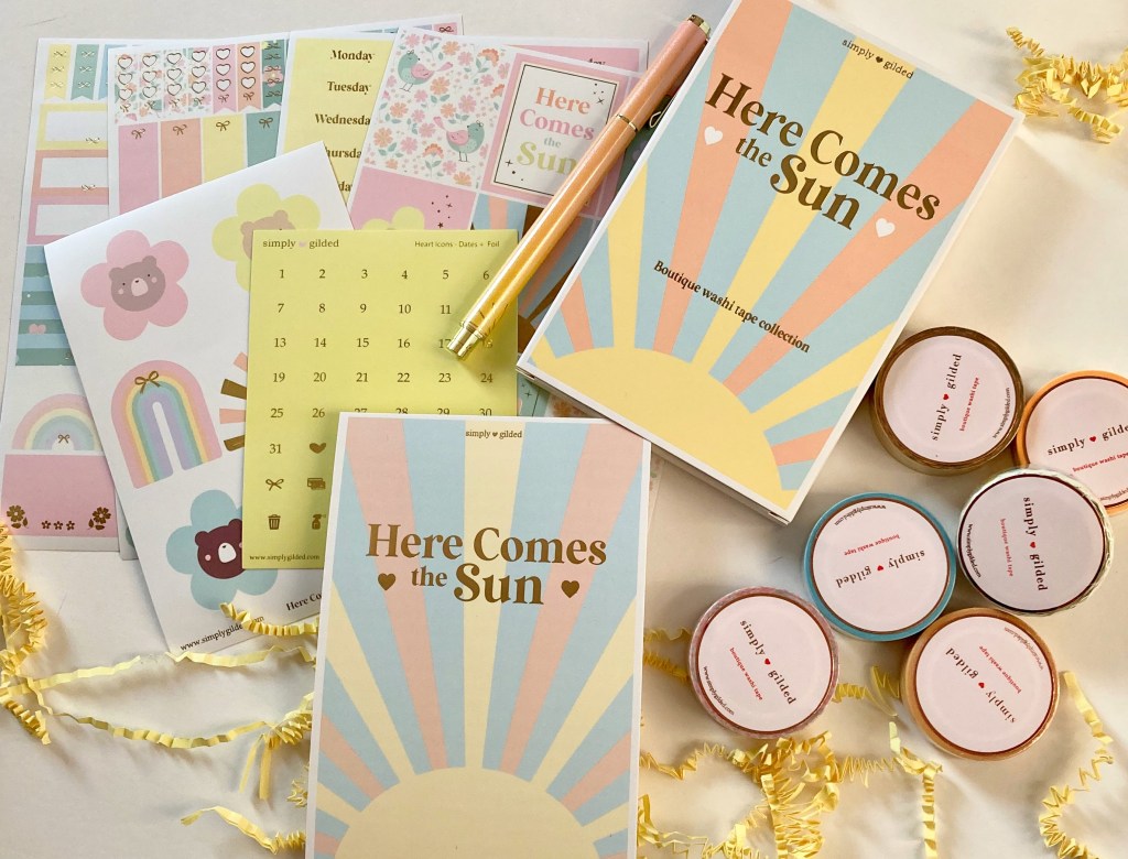Just wanted to share Simply Gilded‘s newest box, Here Comes The Sun. Sunshine in a box? Yep, you’ll find it here. The colors and designs are perfect for spring. Take a look!
