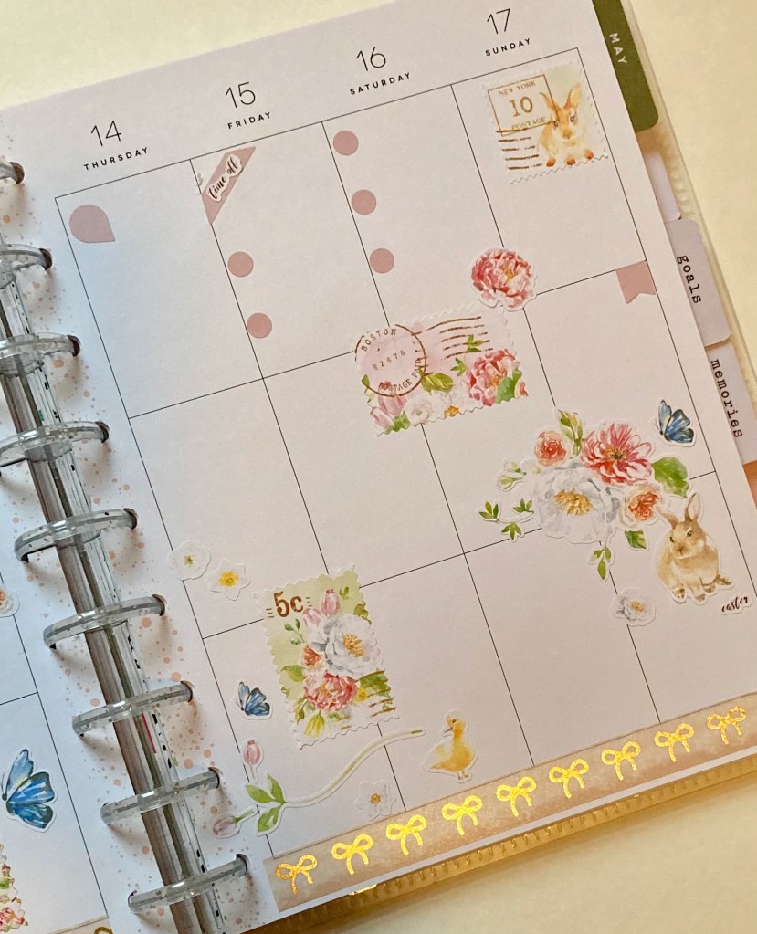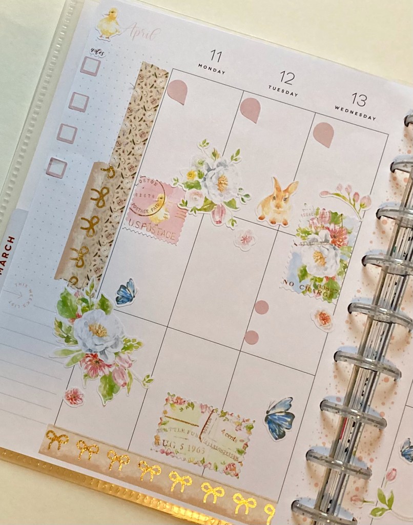 Here’s my planner spread for this week- Easter week. I recently purchased these stickers from Love, Charmaine. I love how they look on this spread. Gimme all the flowers, pastels and bunnies.
