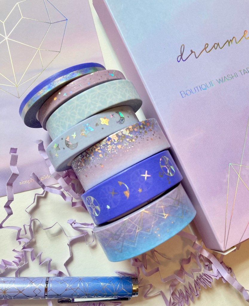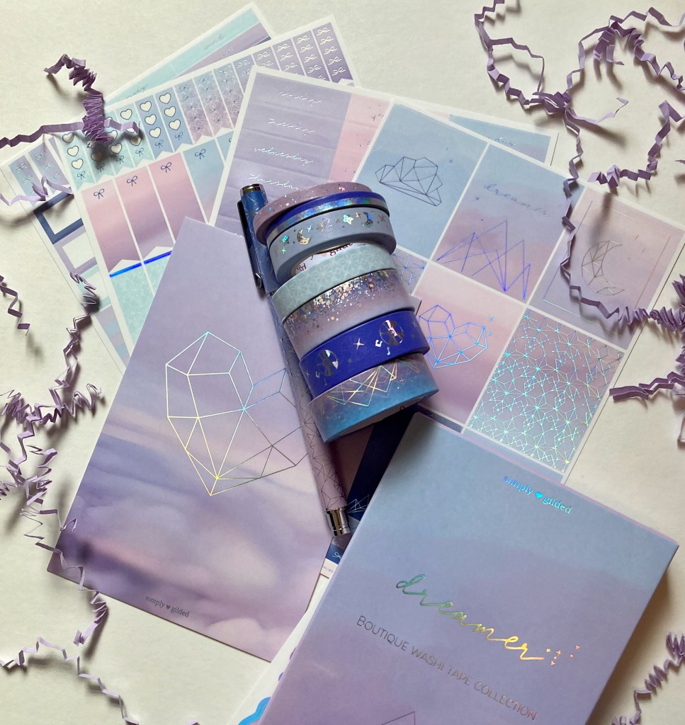 Just wanted to share the newest Simply Gilded box for this month… Dreamer. The colors are so vibrant and rich – I really like all the purples and blues in this box. I also can’t get enough of the celestial theme too. 🌙