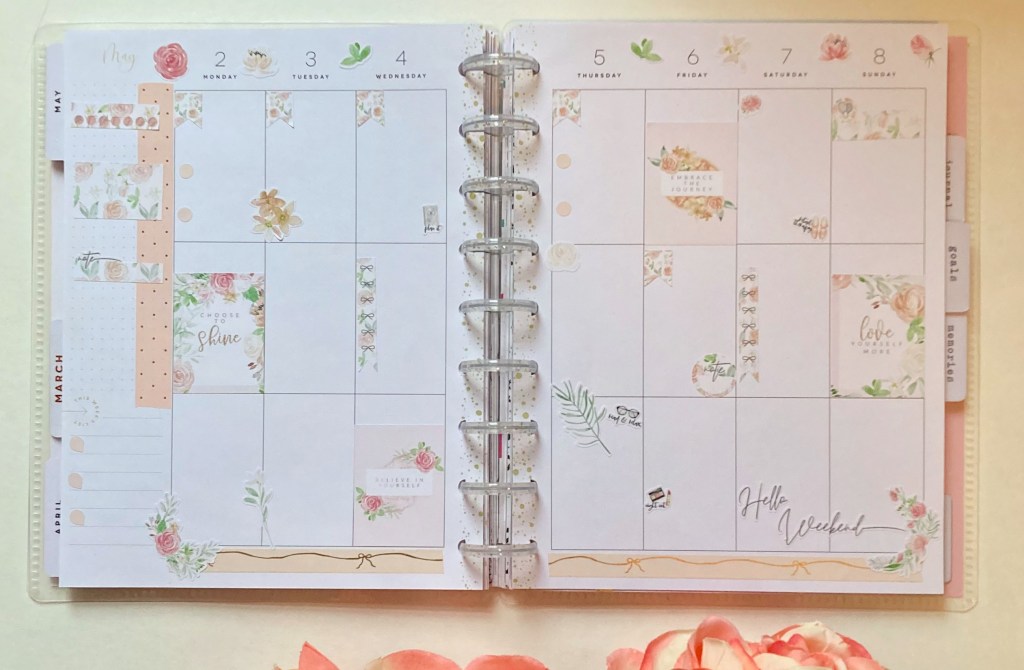 I have a very pretty planner spread to share this week. Right now I’m all about the beginning of spring, flowers are blooming, Mother’s Day is right around the corner. Everything feels very fresh. 💐