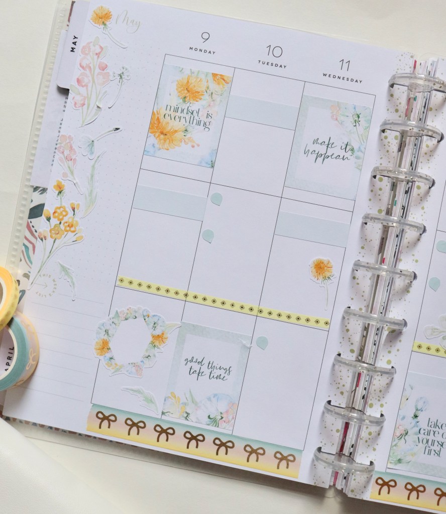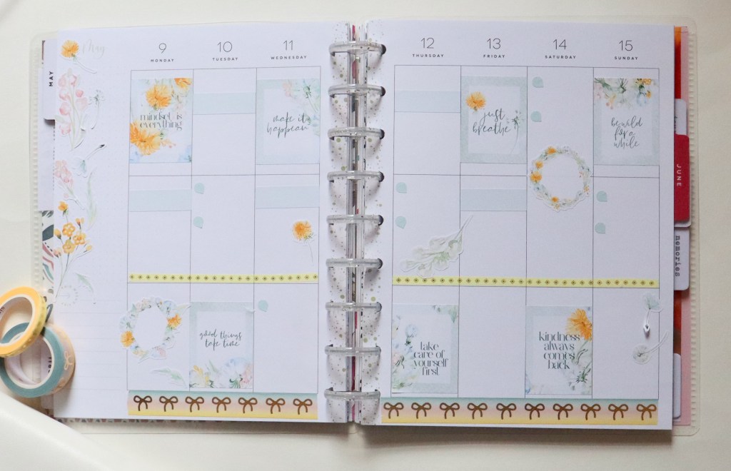 Just sharing my weekly spread for this week. 😊 I used a Love, Charmaine sticker kit I had in my stash. It totally feels like a May spread to me. Love the fresh colors and the pretty florals. Washi is Simply Gilded.