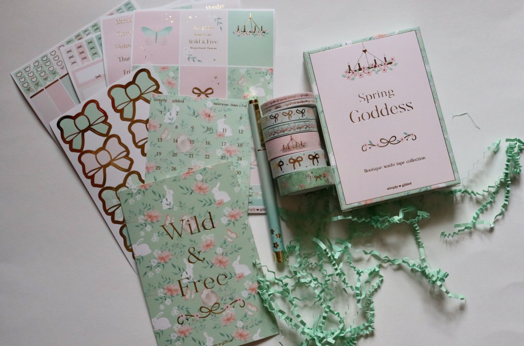 Just checking in today to share Simply Gilded’s latest box, Spring Goddess. If you saw my post from Monday, you might have already caught a glimpse of this kit in my planner. Does anyone else get so excited when you get new supplies, so you just go ahead and use them? 😊