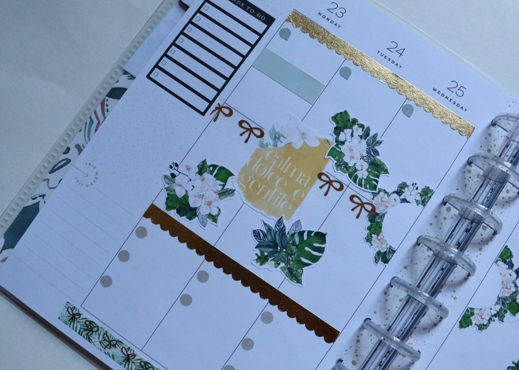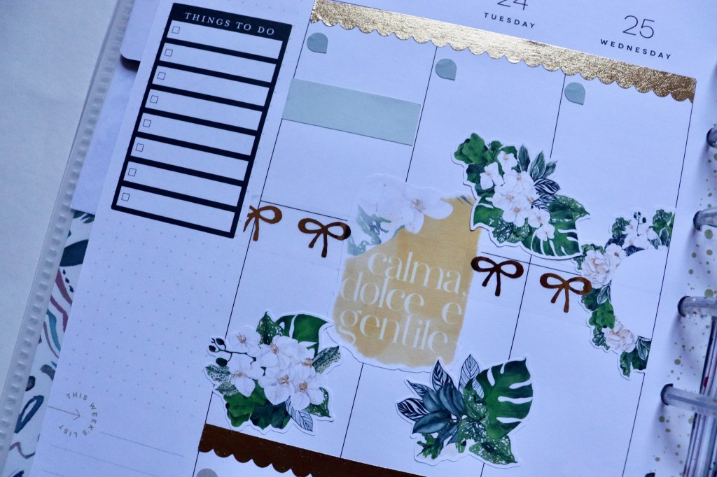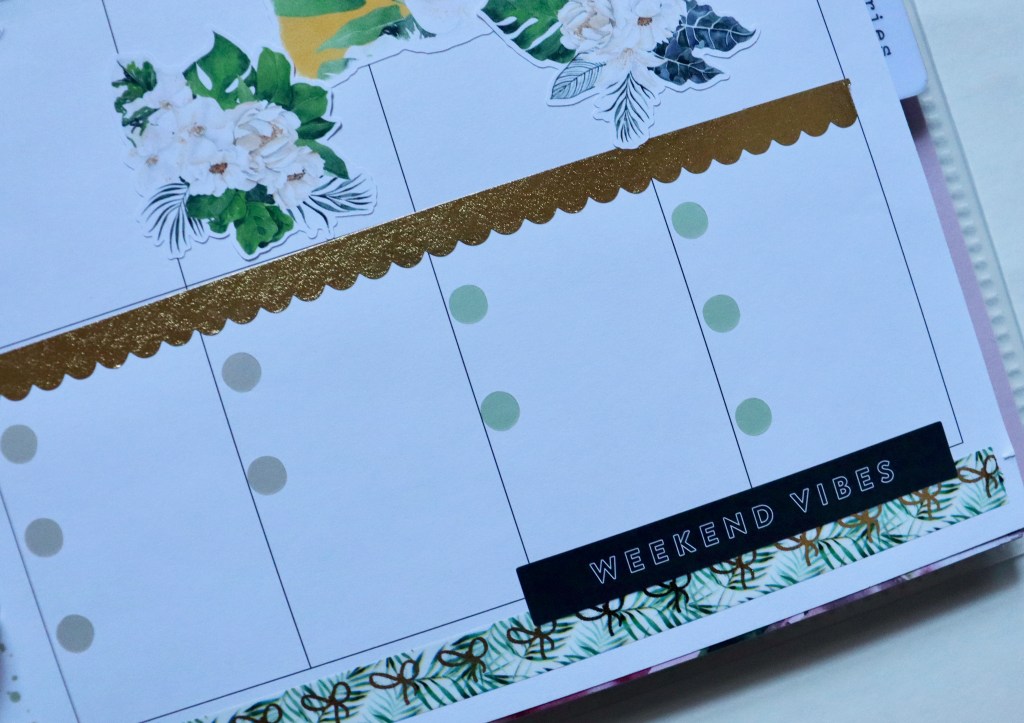 I used some more of my sticker stash this week. I used some of my pretty Love, Charmaine stickers, along with Simply Gilded and Planner Society washi. The pop of yellow is everything. ☺️ 💛 🌼
