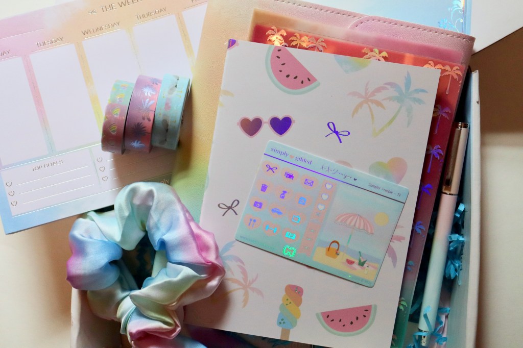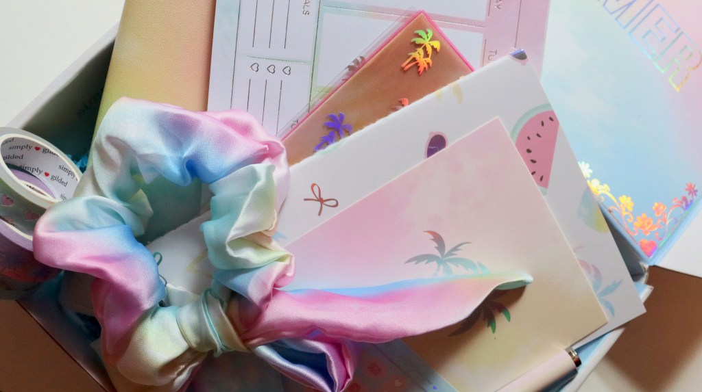 It coordinates with June’s Beach Chic box that just came out. I’m feeling all the pastel, tropical vibes this year. This box has the prettiest accessories- like the sticker book and the scrunchie. I can’t wait to put them all to good use. Take a look below and order yourself one if you haven’t already. 😊