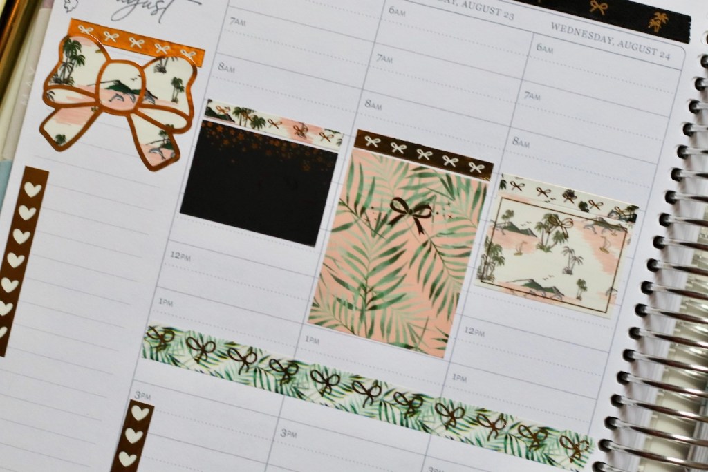 Fall is knocking on the door… but there’s still some summertime left. So, I wanted to use the rest of my Simply Gilded stickers from last summer’s box. I love the black, the green palms and the touch of pink. This is still one of my favorite boxes. That’s why I hoarded it for so long. Haha!