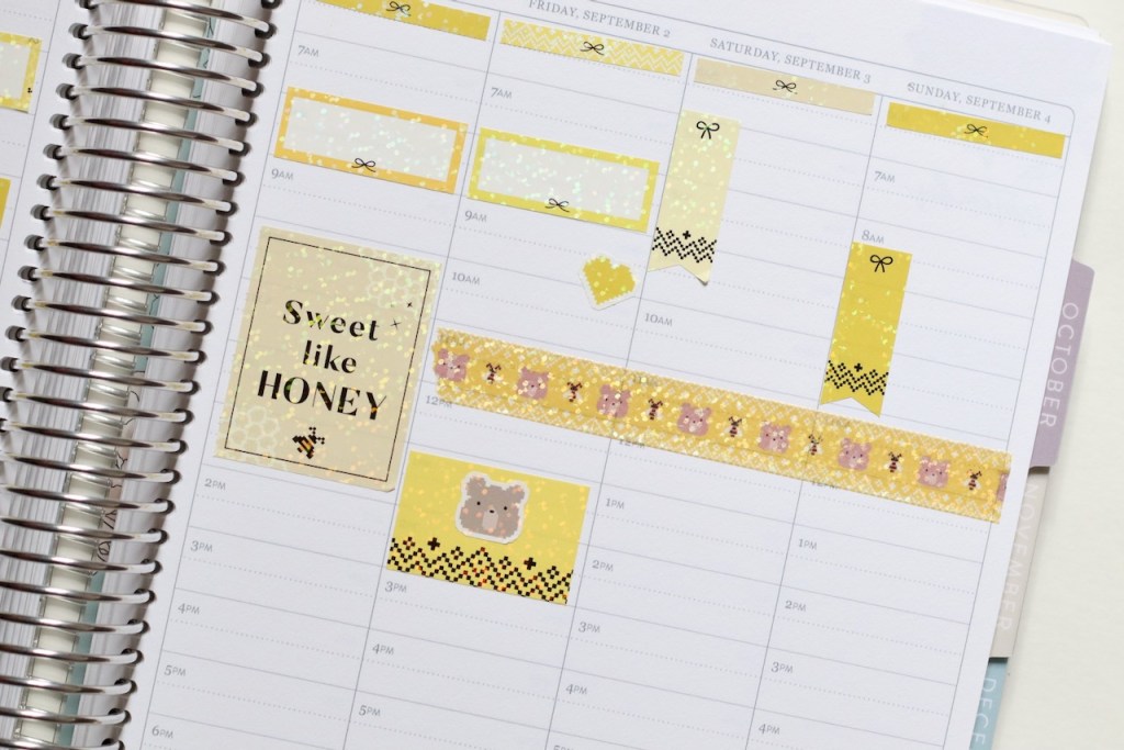 These stickers and washi are from Simply Gilded. I love her little Jasper the bear themed goodies. All the glittery flecks are spot on. Sweet like honey, indeed.