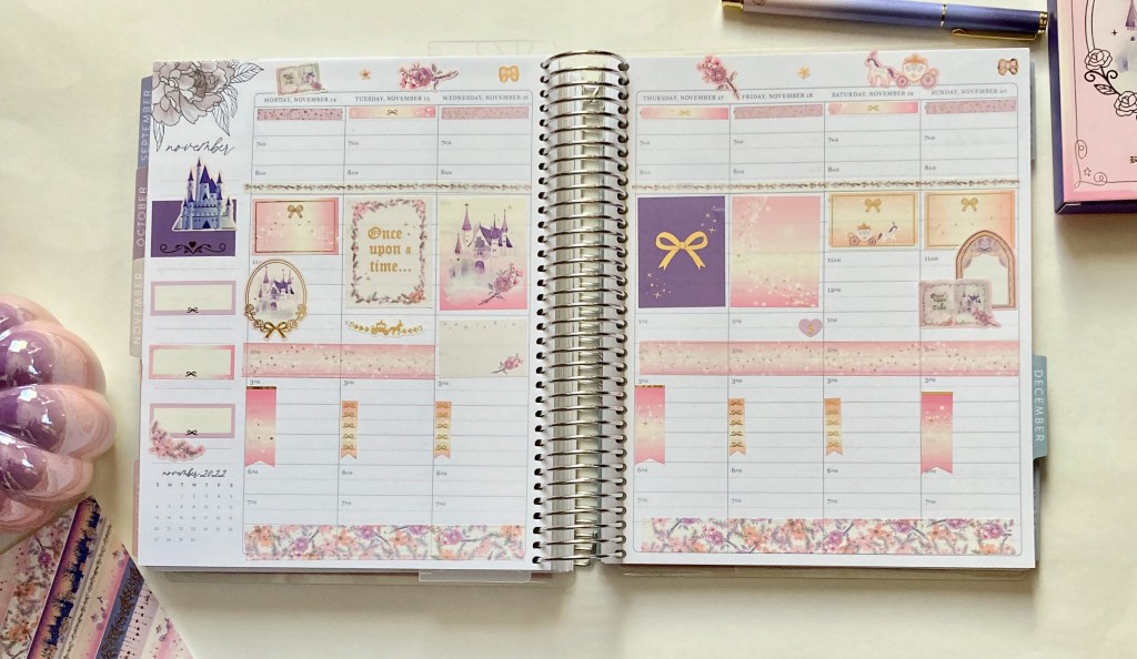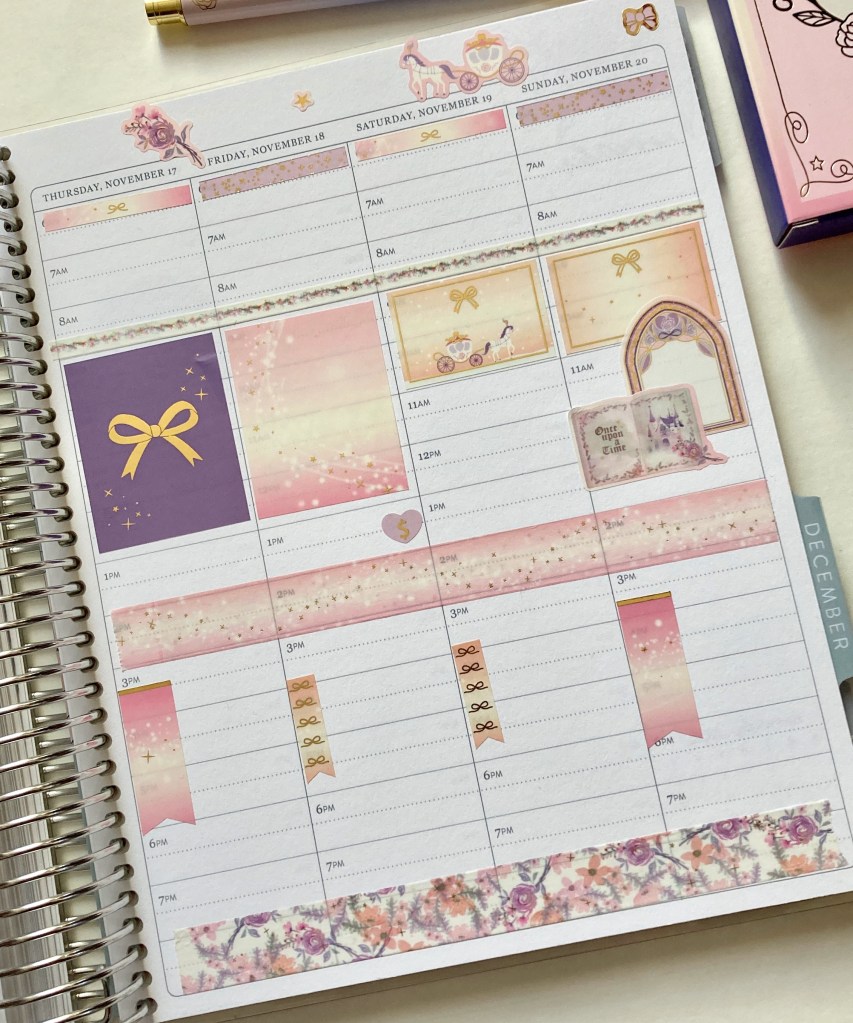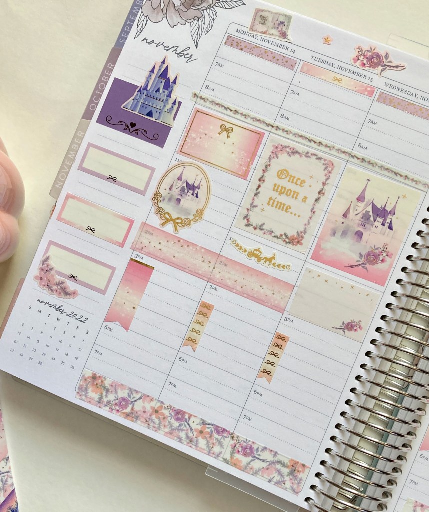 It’s one of my favorite weeks of the year… my birthday is this week! I wanted something special for my Erin Condren weekly spread this week… luckily I received the brand new Simply Gilded box just in time to use it here. The box is Once Upon a Time… and it fits perfectly for a birthday! Like Mariah Carey, I am eternally 12 inside. Haha!